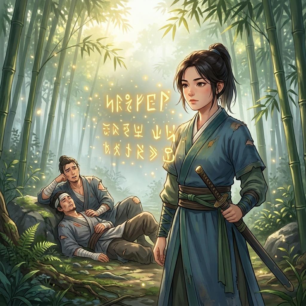Nàng mặc một chiếc áo ngắn màu sen nhạt, trên đầu cài trâm bạch ngọc, sắc tái nhợt, vành đỏ hoe, trông như vừa mới khóc. Thấy ta, ánh nàng thoáng động, rồi cúi đầu, bước nhanh lướt qua cạnh ta.
